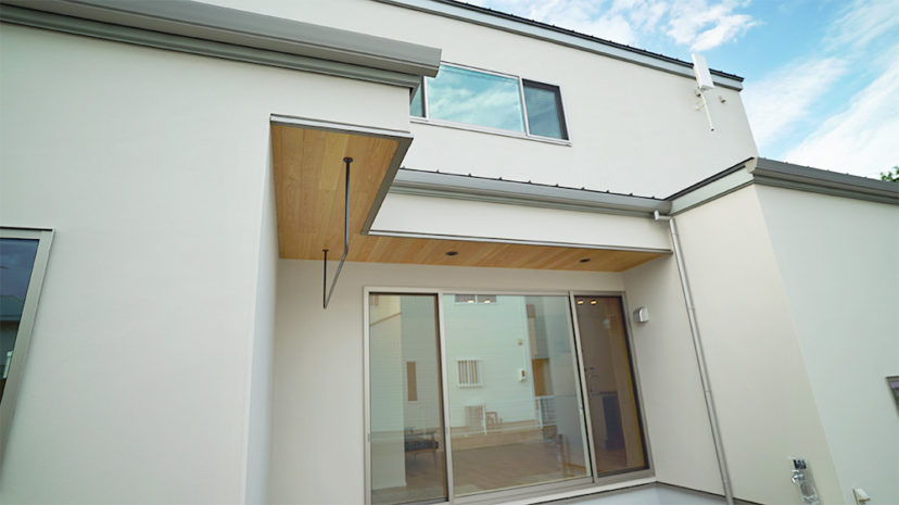 ボックスタイプのスタイリッシュな外観。飾らない素材の質感を大切にしながら、オフホワイトを基調に淡く引き立つ珪藻土塗りが家全体を包み込みます。無垢天井やアイアンが要所でアクセントとなる都会的な和モダンハウスが完成しました。