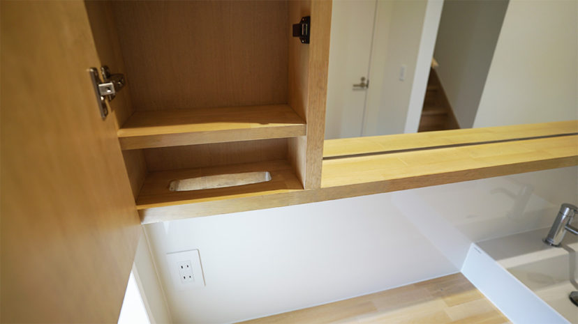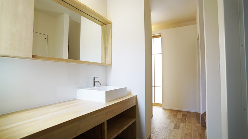 アイディアの詰まった自然素材の造作洗面室