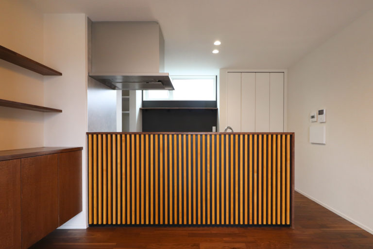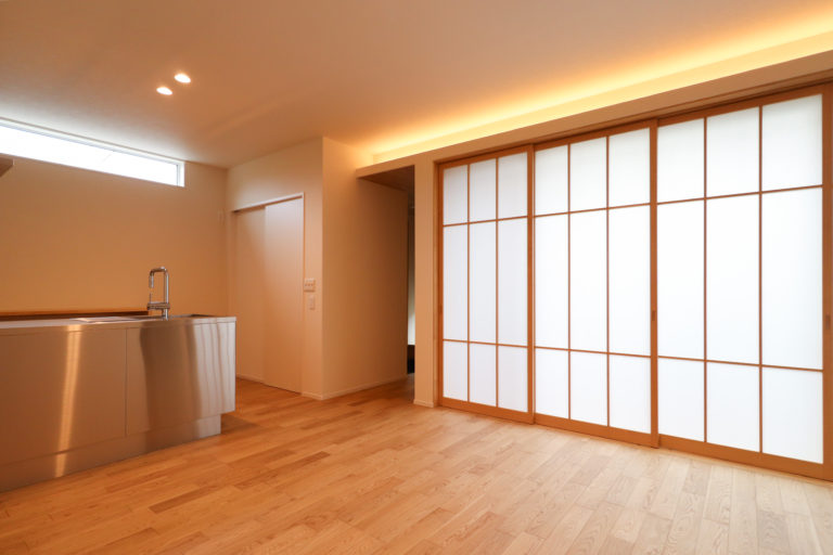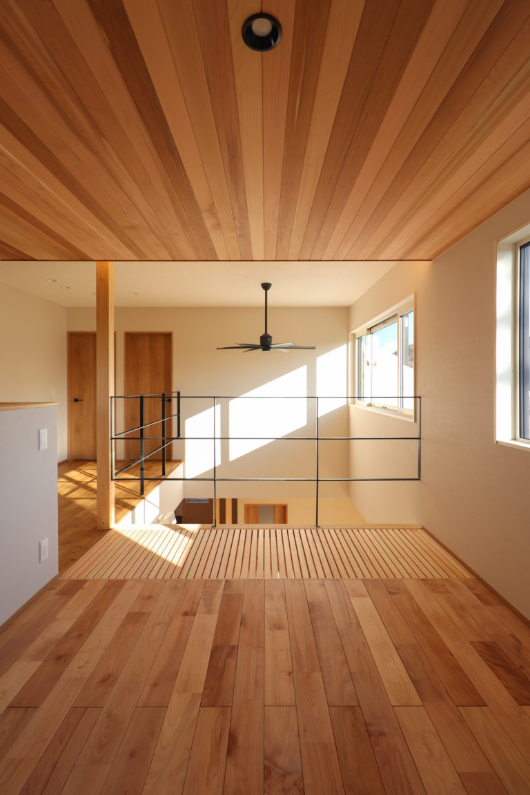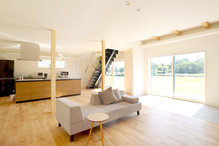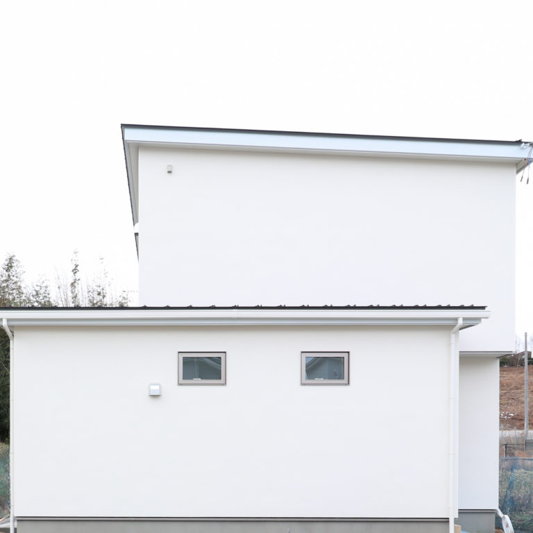外壁:窯業系サイディング 内壁:珪藻土 kitchen:ラクエラ bath:アライズ toilet:サティスS C値:0.4㎠/㎡